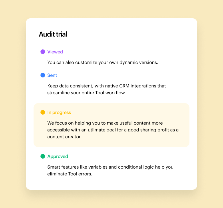 Get real-time access to approvals, comments and version tracking. Smart features like variables and conditional logic help you eliminate Tool errors.